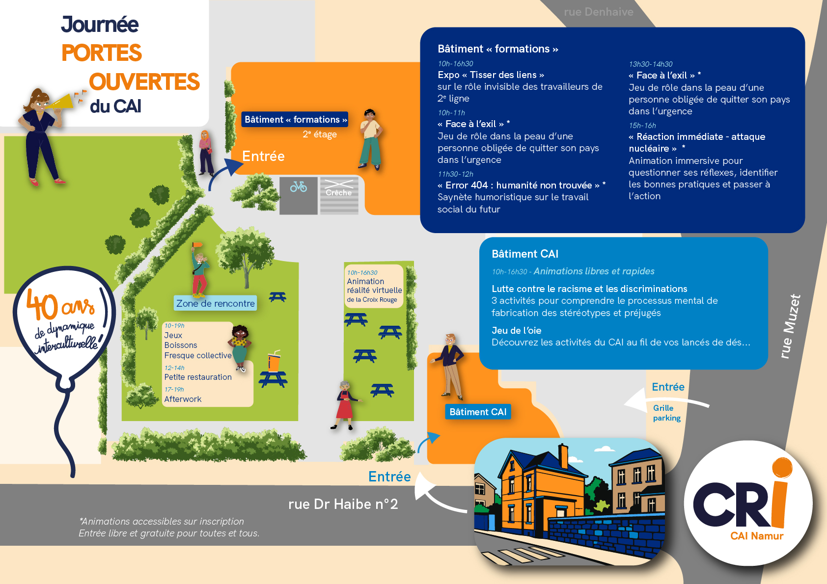 Avec cette journée portes ouvertes, nous vous invitons à découvrir le CAI dans toute sa diversité : nos projets, nos travailleurs, nos locaux,… mais aussi notre histoire et les valeurs qui guident notre engagement.