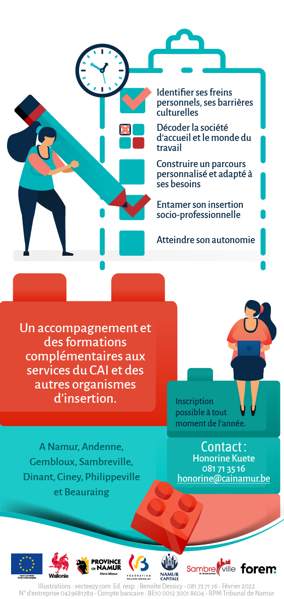 Le projet sera déployé principalement à Namur avec un suivi dans nos 7 bureaux d’accueil décentralisés (Andenne, Gembloux, Sambreville, Dinant, Ciney, Philippeville et Beauraing). Des séances d’information sont prévues de façon régulière.