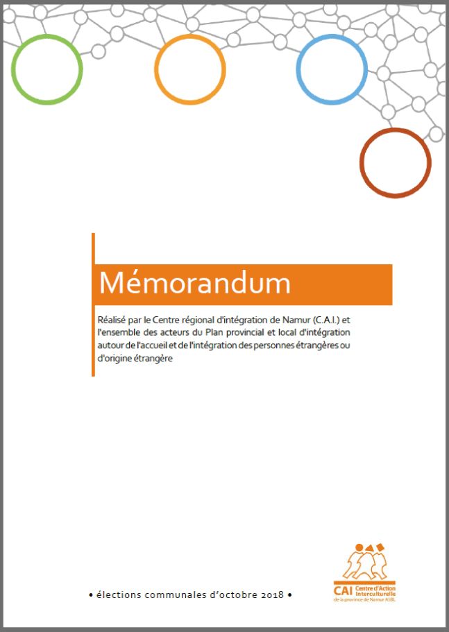 Le Centre d’action interculturelle (C.A.I.) en tant que centre régional pour l’intégration des personnes étrangères ou d’origine étrangère, en s’appuyant sur les constats et les priorisations des acteurs de terrain, a rédigé un mémorandum présentant les souhaits partagés en matière d’accueil et d’intégration des personnes étrangères ou d’origine étrangère. Les priorités listées dans le document, fruit d’une consultation des acteurs de terrain et participants du Plan provincial et local d’intégration (PPLI), reflètent cependant des préoccupations communales en connexion directe avec l’actualité régionale, fédérale, voire mondiale. Elles s’accordent avec un travail préliminaire des Centres Régionaux d’Intégration compilé par le Dispositif d’appui aux Centres Régionaux d’Intégration (DISCRI) et intitulé Mémorandum pour une commune interculturelle. De la même manière, les acteurs qui ont pris part à la co-construction de mémorandum et le C.A.I. peuvent être satisfaits de l’orientation générale donnée à leurs priorités. Elles s’inscrivent dans la même direction que les mémorandums d’autres acteurs majeurs de notre secteur.