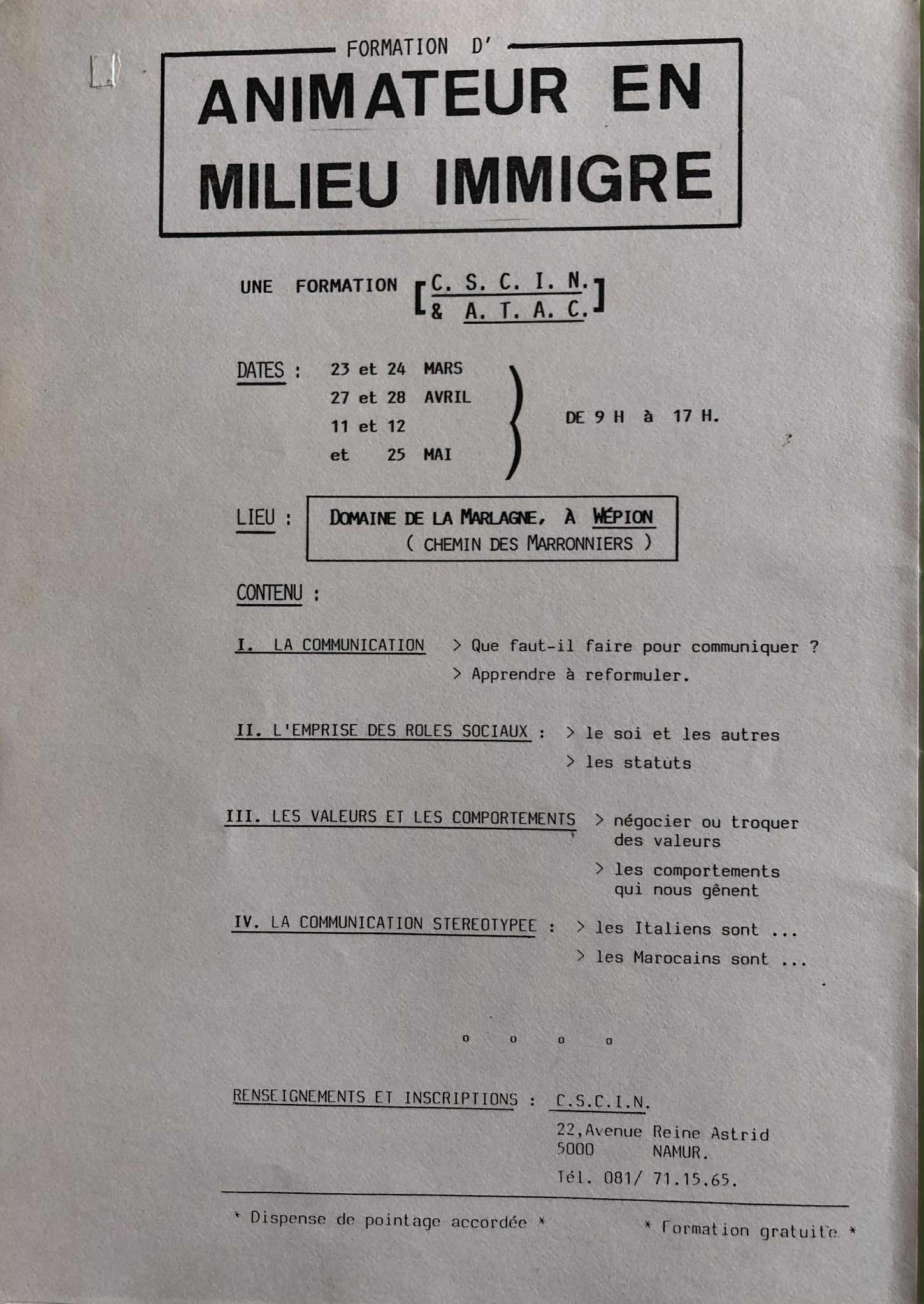 Naissance du centre socio-culturel des immigrés de la province de Namur (CSCIN)
