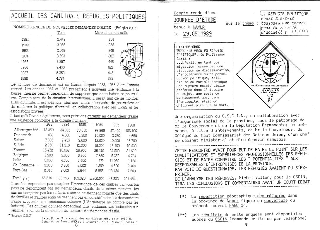 Une journée d’étude est organisée à la suite de la parution de l’étude sociologique réalisée par le Centre socio-culturel des immigrés de Namur (CSCIN) et le Bureau social de la Province de Namur sur la présence de candidats réfugiés politiques en province de Namur.