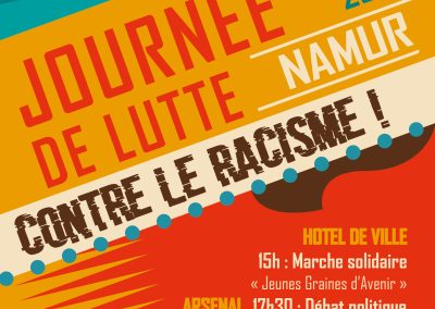 - 2017 : Campagne de lutte contre le racisme avec une activité phare le 18 mars sur la place d’Armes à Namur, « Namur sans murs », une fête réunissant spectacles, musique, jeux, animations, ateliers, etc.